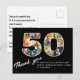 Una forma maravillosa de decir gracias a los que asistieron a la celebración de un cumpleaños número 50. Una tarjeta de agradecimiento única de diseño clásico en blanco y negro. Utilice nuestra plantilla para crear su propio collage de fotos personalizado. Este accesorio de fiesta de cumpleaños lleno de amor para esa fiesta maravillosa tiene un formato elegante y sencillo con una tipografía hermosa. El diseño se centra en sus 14 fotos en el "50". Las fotos utilizadas son cuadradas (estilo Instagram) con todas las imágenes bastante centradas. Puede utilizar imágenes en formato horizontal y vertical que se recortarán automáticamente. Cambie sus imágenes a diferentes posiciones y diviértase creando su diseño. Pase por nuestra tienda y explore la gama de regalos de fotos para cumpleaños número 50.