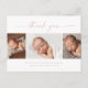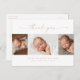 Tarjeta de agradecimiento para bebé con colaje de fotos y texto simple. La parte trasera incluye un mensaje de agradecimiento que puedes personalizar o eliminar si prefieres escribir tu agradecimiento a mano.