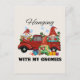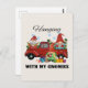 Se propaga la alegría de las vacaciones con esta divertida postal que incluye la frase "Colgar con mis gnomos" y adorables Navidades escandinavos gnomos que usan sombreros de Papá Noel, montando alegremente en un auto rojo festivo. Un diseño caprichoso y acogedor, perfecto para los amantes del gnomo, las reuniones familiares y todo aquel que disfrute de vibraciones Navidades. Ideal como una idea única de regalo de vacaciones para amigos, compañeros de trabajo o seres queridos.