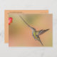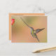 Postal con el espectacular colibrí a la espada en vuelo en un bosque nublado ecuatoriano, con su largo pico alcanzando una flor. Bonita carta para los amantes de las aves, los animales y la naturaleza. Foto tomada en Guango Lodge, Papallacta, Ecuador.