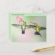Postal con dos colibríes brillantes coronados de verde volando uno al lado del otro en un bosque nublado de Costa Rica. Hermosa tarjeta única para parejas románticas, compromisos y aniversarios, así como para los amantes de las aves, la naturaleza y el jardín. Foto tomada en Bosque de Paz Reserva Biologica, Valle del Río Toro, Alajuela, Costa Rica.