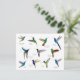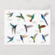 Tarjeta postal para amantes de los colibríes que presenta varias especies de colibríes tropicales pintados a mano, como el Coronet Hummingbird de terciopelo púrpura, el Starfrontlet de garganta azul, el Jacobino de cuello blanco, el Zafiro de cola dorada, el Starfrontlet oscuro y los colibríes de vientre negro. Imágenes tomadas de mis pinturas originales en acuarela.