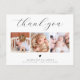 Crea tu propia y hermosa tarjeta postal de agradecimiento de baby shower con un collage de fotos para agradecer a amigos y familiares por darle la bienvenida a tu pequeño. El diseño elegante y minimalista presenta un collage de tres fotos personalizadas y tipografía elegante con tu mensaje de "gracias" en una letra chic y la información de tu bebé en una fuente clásica. También hay un pequeño corazón adorable. En la parte posterior, hay un mensaje personalizable con tus nombres. Hazlo único reemplazando el texto y las imágenes haciendo clic en el botón "Personalizar".