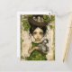Una adorable muñeca con un nido de pájaro en la cabeza y su pájaro mascota en brazos collage de medios mixtos generado por IA con elementos efímeros vintage y acuarela