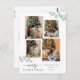 Nuestra elegante tarjeta fotográfica de vacaciones es ideal para todo aquel que busque una manera única de desear a sus seres queridos unas vacaciones felices a través de una tarjeta elegante y elegante con su propia foto. El diseño es moda elegante y único. Presenta un collage de 4 fotos personalizables, dos de ellas dentro de un marco blanco elegante. El texto del guión elegante se coloca en la parte inferior junto con el nombre de su familia y el año en curso en letras elegantes. Hermosas hojas de eucalipto decoran la tarjeta con un toque botánico. Use el botón "personalizar" para reemplazar la plantilla con sus propias fotos, e introduzca su nombre y el año actual. ¡Desee una Feliz Navidad de una manera única!