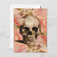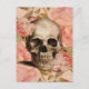 Este diseño oscuro y dulce presenta un collage de arte vintage que incluye un dibujo anatómico de un cráneo y un ilustracion botánico de rosas rosadas.