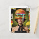 una mujer tiene una hamburguesa de queso para su cabeza arte de collage surrealista