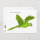 A beautiful olive green australian parrot flying. Verse "where does time go?" Postcard