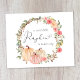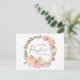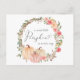 Una elegante y bonito tarjeta postal de invitación a la ducha para bebé con "una calabaza dulce está en camino" escrita en tipografía gris suave y un guión con un latido cardíaco, y una guirnalda de calabaza rosa pastel y coral y acuarelas florales. En la parte trasera, personaliza fácilmente el nombre de la madre y los detalles de la ducha en una simple tipografía gris.