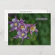Hermosas flores de la Columbina Azul se paran orgullosamente contra un fondo verde del bosque en la parte delantera de esta postal. El texto en la parte superior derecha dice COLORADO.