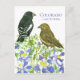 Postal decorada con aves de corral macho y hembra que se unen entre las colmenas rocosas de las colinas de la montaña dibujadas con tinta y pintadas con acuarela. Inspirado por el ave estatal y flor estatal de Colorado.
