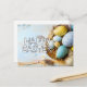 Esta hermosa postal cuenta con una canasta de vacaciones de Pascua Springtime llena de huevos frescos.