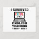 Diseño de profesores de inglés con laptop y dice: Sobreviví A La Enseñanza Virtual En Inglés 2020-2021. El regalo para todos los que aprenden a través de Internet está en la oficina del hogar, así como para estudiantes y profesores.