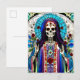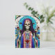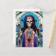Aquí hay una postal muy colorida que presenta una imagen de Santa Muerte.