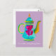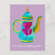 Una bonita acuarela de una colorida tetera turca de ilustracion azul y rosa. Genial y lindo para los amantes del té.