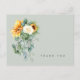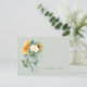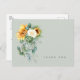 Funeral, tarjeta de agradecimiento de duelo. Nombre de la familia y gracias por la espalda. Tipografía. spray floral de girasol y peonia. Salvia.