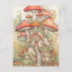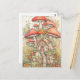 Esta postal única cuenta con un ilustracion de una vivienda en el bosque hecha de setas gigantes florecientes.