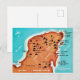 Colorido mapa descriptivo de la península de Yucatán, México, reutilizado en una postal.
