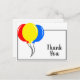 Envíe sus gracias con esta Colorida tarjeta postal. Personalizar esto como tu deseo o déjalo como está. Cuenta con tres globos en rojo, azul y amarillo, y 'Gracias' en un tipografía de escritura tierno.