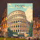 Celebre uno de los monumentos más icónicos del mundo con este ilustracion vintage de postal del Coliseo en Roma, Italia. Diseñado en un estilo retro intemporal, esta obra destaca la grandeza de la antigua arquitectura romana con colores llamativos, textura clásica y un ambiente nostálgico y acogedor. Perfecto para coleccionistas de arte de viajes histórico o amantes de la decoración italiana.