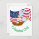 This image celebrates Columbus Day and the historical journey of Christopher Columbus. The graphic features a stylized sailing ship—reminiscent of the Santa Maria—with the American flag and a map of the globe in the background, along with a compass. It marks the day that historically commemorates Columbus's arrival in the Americas, a day recognized in the U.S. on the second Monday in October.