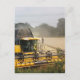 Cosechador de combinación amarilla en el trabajo en un campo de maíz.