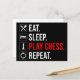 Postal Come. Duerme. Juega al ajedrez. Repite