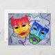 Máscaras de teatro de comedia y tragedia, diseñadas a mano por Sandra Gale. Este dibujo original es colorido y caprichoso y se ve muy bien en cualquier producto. Se puede dar como regalo al actor que conoces, o como una adorable decoración colorida. Los rostros felices y tristes con colores coordinados representan el teatro y la actuación. Se ve genial en todos los artículos y es apropiado para todas las edades.