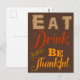 Postal comer beber ser agradecido día de acción de gracia