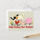 Una vaca, una oveja, un cerdo, un conejo y un pollo dicen "¡Dejen de comer a nuestros bebés!" Buena manera de recordar a los comedores de carne que están comiendo a los hijos de alguien.