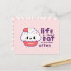 Atrapado con cara feliz y la cita "La vida es corta, come quequitos a menudo".