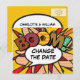 Personaliza con tus nombres y detalles para anunciar el cambio de fecha de tu evento especial. Diseño retro divertido y moderno con temática de arte pop de cómics, perfecto para bodas, despedidas de soltera, baby showers, bautizos, fiestas de compromiso, celebraciones de aniversario, graduaciones, fiestas de cumpleaños y otros eventos especiales durante todo el año. Un diseño fresco, trendy y divertido que pone el ¡Zas! en tu día. Diseñado por Thisisnotme©
