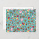 Postal con un ilustracion de comida basura muy lindo. Este divertido diseño de patrones tiene hamburguesa, patatas fritas, perritos calientes, pizza, helado, palomitas de maíz y muchos otros doodles de comida lindos.