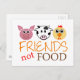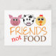 El diseño dulce que ofrecía una cara del cerdo, de la vaca y del pollo del dibujo animado con las palabras "amigos, no comida" imprimió abajo. Regalo perfecto para los veganos y los vegetarianos en su vida, o para cualquier persona que apoya una forma de vida compasiva, no violenta. Libere para cambiar el color de fondo. Paz.