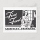 Publicidad en blanco y negro de principios del siglo XX. "Comida fina cuidadosamente preparada" Con un hombre y una mujer sentados en una mesa