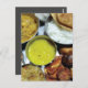 Postal india de comida vegetariana. La tarjeta postal de comida vegetariana india es una postal de bello diseño que muestra el hermoso y diverso mundo de la cocina vegetariana en India. La parte delantera de la postal ofrece una colorida y seductora imagen de una variedad de platos vegetarianos tradicionales indios. Desde curry aromático hasta platos de arroz sabrosos, la imagen capta la esencia de la cocina india y su rico patrimonio vegetariano. La postal sirve como una deliciosa manera de compartir la belleza y la deliciosidad de la comida vegetariana india con amigos y familia. Tanto si eres un amante de la comida, un viajero, como simplemente alguien que aprecia el arte de la gastronomía, esta postal es un conservador único y reflexivo. Ya sea que lo envíes como postal o que lo guardes como recuerdo, la postal de comida vegetariana india es una elección perfecta para cualquiera que quiera celebrar los sabores y tradiciones de la cocina vegetariana en India.