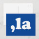 Postal Comma La kamala pronunciación tipografía azul