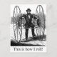 Esta bicicleta antigua de los años 1860 tiene una inusual configuración de ruedas lado a lado. También utiliza poder de brazo y pierna. La leyenda añadida es "¡Así es como rollo!"