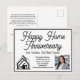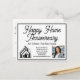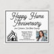 Esta tarjeta postal profesional de bienes raíces está hecha a medida con el nombre de su compañía de bienes raíces bajo la escritura moderna. Estas tarjetas de presentación de bienes raíces blancas y negras elegantes presentan un logotipo de casa que se puede mantener o reemplazar. Agregue la foto de su agente inmobiliario para marketing junto con sus datos de contacto para una nota de aniversario de hogar o inauguración de casa.