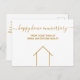 Esta tarjeta postal moderna de aniversario de Happy Home está hecha a medida con el nombre de su compañía de bienes raíces bajo la tipografía chic. Estas tarjetas postales minimalistas blancas y doradas presentan un simple dibujo de una casa. Son perfectas para enviar a clientes anteriores que compraron una casa para recordarles que recomienden a amigos y familiares que buscan comprar o vender su hogar. La mercadotecnia de negocios inmobiliarios significa llegar a clientes recurrentes y pedir sus referencias.