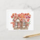 Composición de acuarela de una antigua casa de granja de madera y flores. Ilustración dibujada a mano perfecta para invitación de boda, tarjeta de felicitaciones.