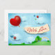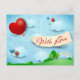 Globo en forma de corazón y mensaje volando sobre el campo, arte digital
