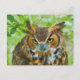 La Gran Lechuza Horneada es la más grande de las lechuzas y en realidad no tiene cuernos — sólo algunos trozos de plumas que se parecen a cuernos. Hace una postal muy bonita.