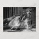 Una postal con una fotografía en blanco y negro de un canguro dormido.