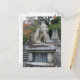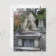Postal con estatua de león del Guardian Japonés. Aquí está uno de los dos leones guardianes encontrados cerca de la entrada del templo Kiyomizu-dera en Japón. Esculpidos de piedra, estos leones icónicos se encuentran en todas las arquitecturas históricas de Japón. El propio Kiyomizu-dera es un templo budista en Kioto, que data del año 798. Sus edificios actuales fueron construidos en 1633 cuando se declaró la restauración. Kiyomizu significa agua clara, o agua pura, cuando se traduce. Este nombre proviene de la cascada que se encuentra en el recinto del templo.