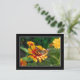 Una postal que muestra una hermosa flor silvestre llamada una manta india, también conocida como pulchella de Gaillardia, con una hermosa mariposa. Estas flores crecen silvestres en muchos estados de Estados Unidos, como Texas y Oklahoma.