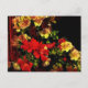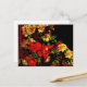 Postal con flores estilizadas rojas y amarillas para diferentes ocasiones.