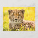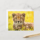 Esta postal muestra una foto de un chita en el pasto. Por Ronda Gregorio. Original del zoológico nacional de Smithsonian.