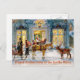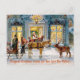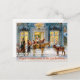 Hermosa imagen vintage de Navidad de una hermosa casa: "viejos tiempos", todo iluminado para Navidades, una pareja en un trineo tirado a caballo saludando a un reno y a Santa Claus personalizado..