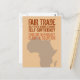 Nota ¡Este es un mensaje de comercio justo pero no necesariamente un producto de comercio justo! El texto dice: COMERCIO JUSTO. Ayudar a África a adquirir autosuficiencia económica. La dependencia de la ayuda alimentaria no es una solución.